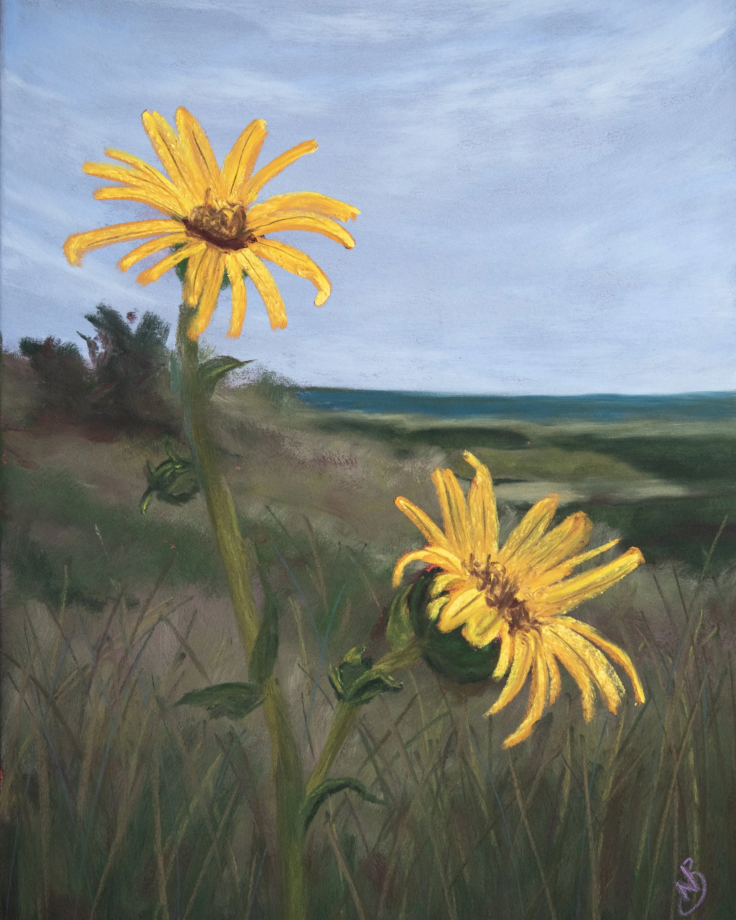 I usually get lost in details, so pulling back to see the wide view is a challenge. Here, the sweep of wildflowers (sunflowers? something else entirely?) pulled me out of the small things and into the vastness. Sometimes the prairie insists you widen your gaze.